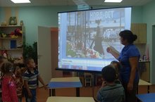 9 сентября 2015 года воспитатель Самигуллина В.Р. в рамках акции «Неделя добра» показала детьми старшей «Б» группы мультфильм «Просто так», который учит детей добру. После просмотра мультфильма дети вспоминали и говорили друг другу вежливые слова и рассказывали о добрых поступках. Целью данного занятия было научить детей делать добрые дела, уважительно относиться к окружающим. В дальнейшем дети также будут знакомится с новыми фольклорными произведениями и доброте и дружбе.