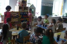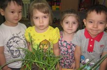 27 апреля воспитатель средней группы “Б” Валеева Т.В. провела занятие по природоведению на тему: “Лук, от семи недуг” - Посадили мы на грядке лука целых три десятка, были луковки так мелки, поместились все в тарелке. Урожай пришли копать: лук наш вырос – не узнать!