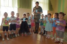 29 апреля 2015 года воспитатель подготовительной группы Хабибуллина Ф.Ю. провела с детьми занятие приуроченное к празднованию 70-я Победы в Великой Отечественной Войне. Целью данного занятия было рассказать детям, какой дорогой ценой досталась людям победа над фашизмом. Воспитывать уважение и чувство благодарности ко всем, кто защищал Родину. В ходе занятия воспитатель рассказала детям о той страшной войне, которая принесла так много смертей, разруху, голод, страдания и слезы, как сражались советские солдаты, защищая свою родину возвращая нам Мир и весну. Рассматривались альбомы, рисунки, «Книга Памяти. Дети рассказывали стихи о войне. В конце занятия детям разложили голубей, которых надо было раскрасить и написать пожелание ветеранам ВОВ. В конце занятия воспитатель подчеркивает мысль, что, где бы ни были советские люди во время войны – на фронте или в тылу, - они сражались за победу, за мир, за счастье. «День Победы – праздник радостный и грустный, поэтому дети почтили память отдавшим жизнь за Родину и не вернувшихся с войны солдат минутой молчания.