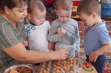 Когда за окном тает снег, а до первой зеленой травки еще долго, так приятно увидеть на подоконнике свежую зелень! Воспитанники ясельной группы под руководством воспитателя Мингазовой Гульнур Наримановны посадили лук. Воспитатель рассказал и показал всю последовательность посадки лука. Педагог напомнил, что лук нужно обязательно есть, так как в нем содержится много витаминов, и минералов которые полезны для организма. Ребята ознакомились свойствами лука. Гульнур Наримановна уточнила, что лук круглый, твёрдый, в светло-коричневых чешуйках (они шуршат). Показывала верх и низ (донце) луковицы. После ознакомления воспитанники посадили луковицы в лотки, и они будут наблюдать за ростом зелёного лука, поливать его и срезать выросшие зелёные перья. Теперь на их «грядке» вырастет вкусный, витаминный, зелёный друг!