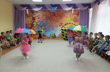 За окном холодно и дождик, а у нас на празднике царила теплая, доброжелательная атмосфера. Воспитанники второй младшей группы исполнили хороводную песню «Осень, Осень, Осень Золотая!». А воспитанники первой младшей группы задорно танцевали. В гости на праздник пришли сказочные герои: красавица Осень, веселый Ёжик, Дедушка Ау и Мухомор. Дети читали стихотворения, весело танцевали, исполняли песни, отгадывали загадки, участвовали в играх вместе со сказочными героями. Праздник в детском саду–это всегда удивительные чудеса, волшебные краски, звонкий смех воспитанников, море улыбок и веселья. Хоть и говорят, что осень унылая пора, но дети, как никто другой, способны радоваться шороху золотистых опавших листьев под ногами, дождику, под которым так интересно гулять под зонтиком, шлепанью по лужам, получая от этого неизгладимые впечатления…