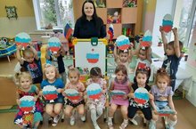 День народного единства празднуется 4 ноября. Это еще молодой и новый праздник для нашей страны. В рамках этого дня воспитатель Агзамова Г.Х. с детьми второй младшей группы провела занятие по аппликации. Дети клеили цветочки белого, синего и красного цвета на воздушный шарик. В итоге у каждого ребенка получился Российский флаг в виде воздушного шарика. Дети с большим удовольствием выполняли свою работу.
