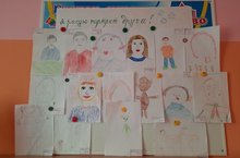 В нашем детском саду эта неделя посвящена дружбе, и поэтому вся воспитательная работа связана с этой темой. С детьми проводятся тематические беседы, организуются подвижные игры. В старшей группе организовали выставку детских рисунков «Я рисую портрет друга». Воспитатель Тухбатова М.М. объяснила детям, что другом может быть не только человек, но и любимая игрушка или домашнее животное и попросила детей поделиться, кого они хотели бы нарисовать. После беседы дети увлеченно взялись за дело, и результат выставки получился вот таким!