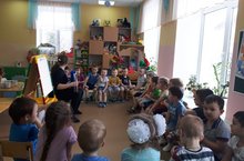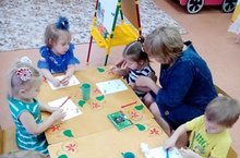 6 февраля во 2 младшей группе воспитатель Самигуллина В.Р. проводила занятие по лепке на тему «Воробушки и кот». К детям в гости пришел кот. Детям было дано задание, слепить воробушек. С детьми рассматривали картины с изображением птиц, изучали, из каких частей состоят тело птицы, рисовали пальцами на воздухе. Для крылышек и клюва использовали семена. Все справились с заданием.