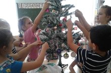 Тиздән Яңа ел бәйрәме җитә. Бәйрәмгә өлкәннәр генә түгел, балалар да әзерләнә. Яңа елның төп бизәге –чыршы. Мәктәпкә әзерлек төркеме балалары тәрбияче апалары белән берлектә чыршы бизәделәр. Күз явын алырлык уенчыклар элгәч, чыршыбыз искиткеч матур төс алды. Шулай ук әти – әниләр дә бу эштән читтә калмады. Алар кәгазьдән матурдан – матур кар бөртекләре, Кар бабай, җәнлек рәсемнәре кисеп алып килделәр.Без аларны тәрәзәләргә ябыштырдык. Төркемебезне матур шарлар, ялтыравык тасмалар белән бизәгәч, бүлмәбез бәйрәм төсмере алды. Хуш киләсең, Яңа ел!