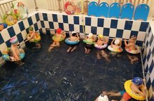 Во 2 младшей группе с детьми проводилось занятие по плаванию. Перед заходом в воду дети приняли душ с мылом. В воде играли в игры «Петушок», «Рыбки». Занятие в воде помогает развивать и укреплять мышечный корсет и правильную осанку, а ритмичное дыхание способствует профилактике респираторных заболеваний. Играя в воде, дети освобождаются от лишней энергии.