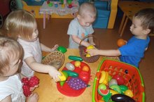 Осень - это время года, когда люди собирают урожай с полей, садов, огородов. Воспитатель Ахмадиева Г.И. детям 1 младшей группы предложила дидактическую игру «Собери урожай». С детьми обобщили знания об овощах и фруктах, учились различать и называть цвета. Малыши собрали много разных овощей и фруктов в красивые корзинки.