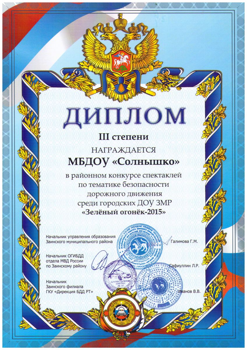 Диплом " Музыкально-театрализованная сказка" 2015г.