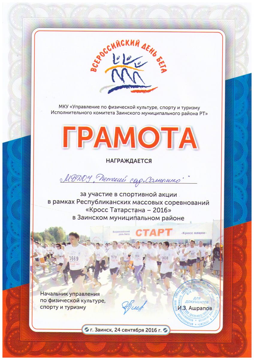 Грамота "Кросс Татарстана-2016"