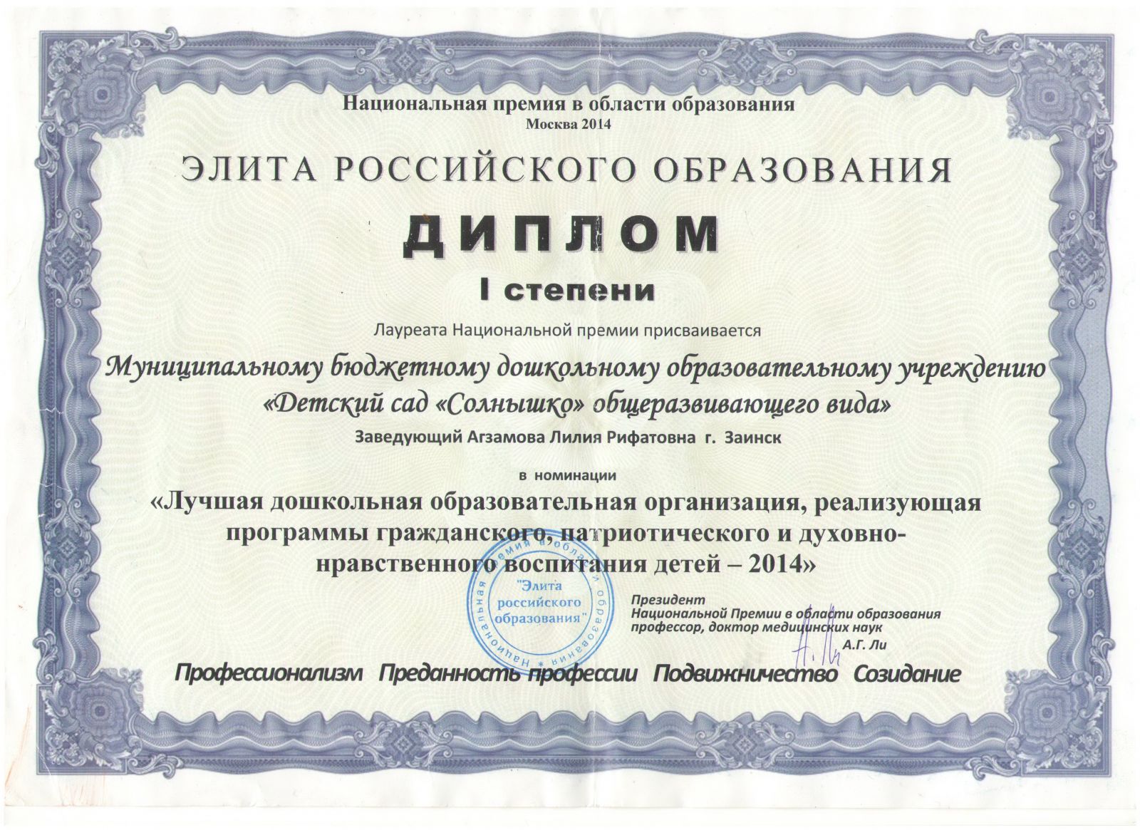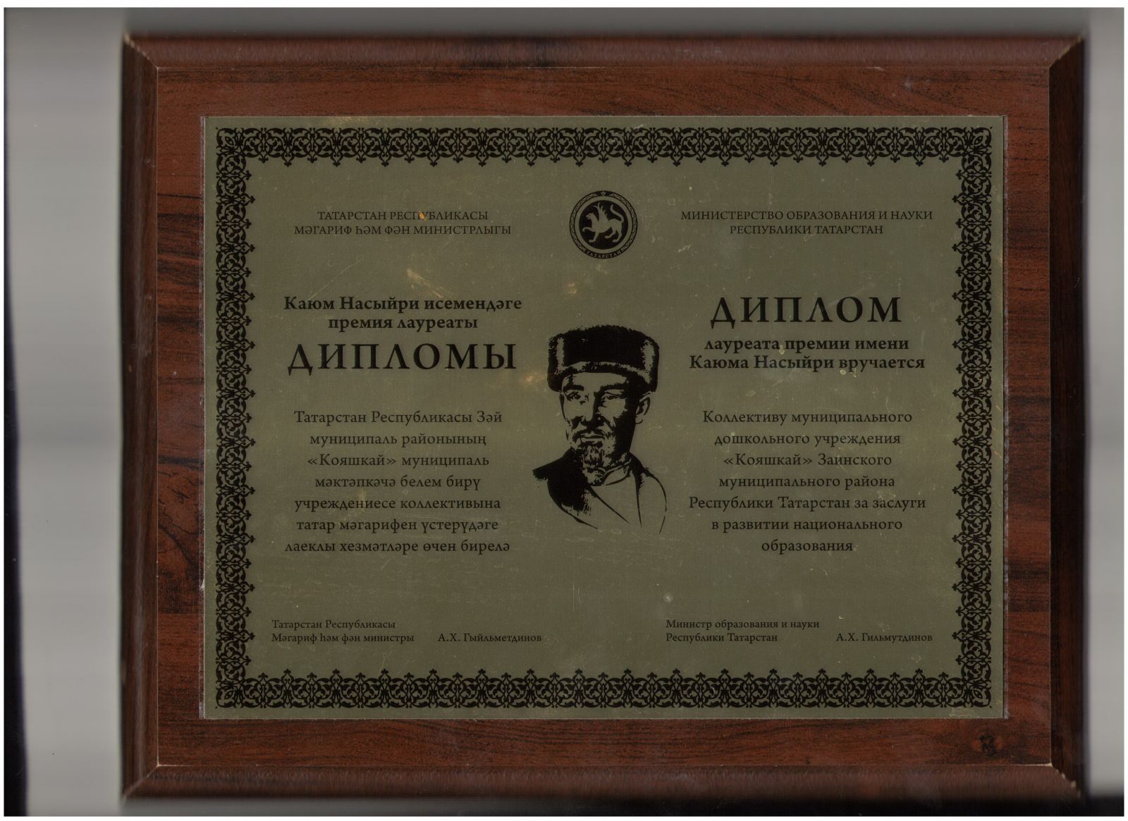 Диплом лауреата премии имени Каюма Насыйри