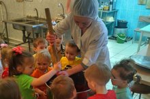 Воспитанники 1 младшей "А" группы посетили пищеблок детского сада в рамках месячника "Организация здорового питания". Экскурсию организовали воспитатель Попова Е.Н. и повар Валиахметова Э.В.