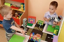 Во 2 младшей «б» группе воспитанники через игровую деятельность повторяли правила дорожного движения. Были использованы дидактические, настольно-печатные игры и игры с макетом улицы.