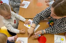 В игровой форме прошло занятие в 1 младшей «а» группе. По дороге колесо у машины сломалось и укатилось в лес. Перед детьми встала задача приделать новые колеса для машины. Дети активно принимали участие в НОД, эмоционально реагируя на свое творчество.
