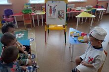 В 1 младшей группе прошло тематическое занятие "В гостях у стоматолога". Воспитатель Уразайкина М.Г. рассказала детям о данной профессии, о том, как правильно ухаживать за зубами, объяснила, почему необходимо беречь зубы. Затем показала, как пользоваться зубной щёткой и правильно чистить зубы. В ходе занятия ребята определили вредные и полезные продукты, закрепили правила личной гигиены. В ходе данных мероприятий у дошкольников воспитывается уважение к профессии "стоматолог", формируется ответственное отношение к своему здоровью.