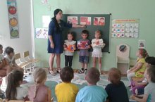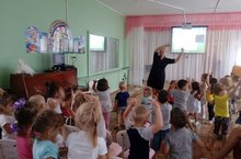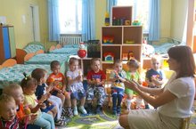 В детском саду продолжается набор малышей. В новом учебном году в нашем садике будут две первые младшие группы. Воспитатель группы "Зайчонок" Муханова Ю.И. сегодня провела с малышами пальчиковые игры. Детишки с интересом вертят в руке султанчики и повторяют за Юлией Ивановной каждое движение.