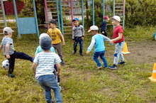 Лучшая на свете игра,Это футбол, скажу вам друзья!С мячом бежать, гол забивать,И громко, весело кричать.В детском саду прошел день футбола. В спортивно-развлекательном мероприятии приняли все дети от мала до велика, особенно понравилось гонять мяч малышам. -