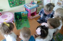 На протяжении двух недель дети первой младшей группы "Лисята" наблюдали за веточкой березы. Вместе с детьми воспитатели отмечали изменения,которые происходили с веточками как набухали почки и в заключении наблюдения -появления листочков. Таким образом , малыши получили первые представления о растениях.