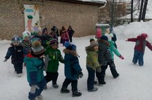 Сегодня на дворе чудесная зимняя погода. Наконец, прошли морозы и на улице потеплело. Дети с радостью вышли на прогулку на свежем воздухе. Дети средней группы "Ёжик" играют в подвижные игру "Мишка косолапый"
