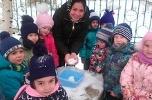Быстро и умело...Несмотря на то, что на дворе еще только начало ноября, на радость детям выпал снежок. Ребята средней группы "Ёжик" вместе с воспитателем Чупахиной И.И. провели эксперименты со снегом. Детишки потрогали снег голыми руками, ощутили, какой он холодный, лепили из снега снежки, бросали его в воду.