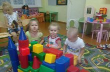 Малыши второй младшей группы "Мышонок" с удовольствием играют со стройматериалами. Крупные детали игры привлекают малышей яркими цветами. Из кубиков и кирпичиков можно построить и домик для куклы, и сказочный замок.