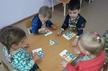 С трёх лет и далее начинается процесс систематизации, закрепления и углубления уже полученных ранее основных навыков и умений. С этой целью воспитатель второй младшей группы Хайруллина Э.Н. использует в работе с детьми дидактические игры для сенсорного развития. Например, игра «Помоги собачке». Дети с удовольствием помогают собачкам найти свои домики, тем самым закрепляют представления о цветах, формируются пространственные представления посредством расположения предметов на плоскости, развивается, логическое мышление, внимание при организации самостоятельной деятельности. Также воспитываются дружеские взаимоотношения между детьми и взаимопомощь. Эту работу воспитатель проводит систематически.