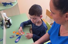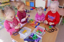 Воспитатель 1 мл.группы Абрамова А.В. в своей работе с малышами часто использует «Веселые шнурочки». Игра способствует развитию мелкой моторики, внимательности и логического мышления, учит различать цвета и называть их. Развитие движений пальцев рук находится в тесной связи с развитием речи. Потому, развивая мелкую моторику, мы способствуем развитию речи у ребенка.