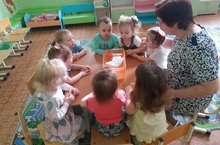 С помощью игры-забавы с водой "Пускание кораблика на воду", воспитатель О.В. Заремба укрепляет здоровье малышей. -