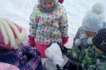 А кто ж в апреле будет рад?А в апреле зиме рады наши малыши, которые с большим удовольствием с воспитателем Тороповой О.А. слепили снеговика.