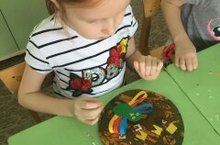 Ранее ребята посадили газонную траву в скорлупу, в течение недели дети сами поливали с помощью пипетки, наблюдали и вот появились первые всходы.