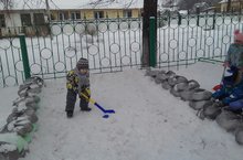 В старшей группе "Лягушонок" ребята на прогулке получают свои первые навыки игры в хоккей. Они под руководством воспитателя Чупахиной И.И. разучивали элементы игры в хоккей. Прежде всего, детей упражняют в играх с клюшкой и шайбой. По мнению педагогов, хоккей способствует развитию таких физических качеств, как ловкость, быстрота, координация движений; психических процессов: внимания, памяти. А самое главное, игра "Хоккей" очень понравилась нашим детям.