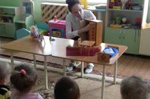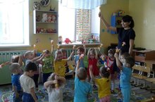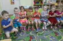 В 1-ой младшей группе "Зайчонок" воспитатель Ю.И. Муханова обыграла с малышами сюжет песенки "Солнышко лучистое", формируя у детей активный словарь. Дети с борльшим интересом повторяют за своим любимым воспитателем.