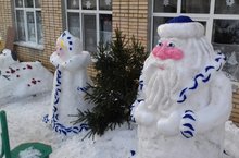 Дошкольные образовательные учреждения активно включились в эту работу. И на нашем участке появился сказочный городок снежных фигур. У ворот нас встречают волшебный Дед Мороз и Снегурочка, а также нас приветствуют символ уходящего года "Петух" и символ нового года "Собака".