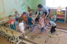 малыши учатся играть в подвижную игру "Птички в гнездышках" 17.11.2017