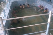 Перед началом занятий детям предлагается посетить туалет. Затем тщательно моются под душем с мылом и мочалкой. После этого заходят в помещение с чашей бассейна.