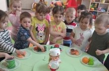 В детском саду продолжается месячник здорового питания. Малыши группы «Курносики» принимают активное участие в различных мероприятиях по данной теме. Ежедневно наше утро начинается с тематической зарядки. Проводятся беседы на темы «Что такое здоровье», «Витамины – полезные продукты». Играем в игры...
