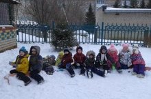 Дети группы «Звездочки» с удовольствием проводят время на прогулке: катаются на ледяных дорожках, мини лыжах, строят крепости и путешествуют, удобно устроившись на снежных постройках!