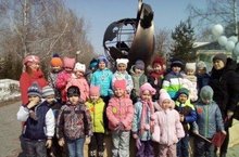 12 апреля в День космонавтики воспитанники старших групп «Дюймовочка» и «Колобок» совершили увлекательное путешествие к архитектурной композиции, посвященной собаке – космонавту Чернушке.