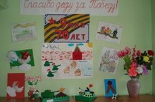 Во 2-ой младшей группе «Аленка» была организована выставка рисунков и поделок на тему: «Спасибо деду за Победу!», посвященная 70-летию со дня Победы.