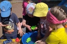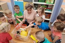 "Маленькие исследователи" 11.07.2022 Педагог Исштанова С.М. с воспитанниками младшей группы «Курносики» поэкспериментировали с предметами, познавая их свойства.