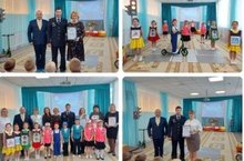 Начальник отделения ГИБДД отдела МВД России по Заинскому району Гарифуллин Р.Г. и начальник Заинского отделения ГБУ "БДД" Иванов В.В. поздравилb победителей и призеров муниципального конкурса "Зеленый огонек 2022" , заведующим ДОУ были вручены подарки - модули автомобилей транспорта специального назначения.
