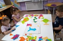 «Мир волшебных фигур» 03.02.2022 Дети старшего дошкольного возраста группы "Буквоешки" с лёгкостью справляются с творческими заданиями по плоскостному конструированию, складывая из имеющихся деталей порой невероятно интересные изображения.