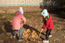 В старшей группе «Почемучки» каждому из ребят хочется принять участие в уборке сухих опавших с деревьев листьев. Они занимают очередь за граблями, делят территорию; сухих веток на участке достаточно, поэтому работы хватает для всех!
