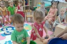 На занятии по конструированию, дети первой младшей группы «Ангелочки», учились строить заборчик для утят. Малышам, из большого количества строительного материала, необходимо было выбрать кубики, и именно красного цвета, учиться составлять их близко друг к другу, что - бы не было промежутков между ними.