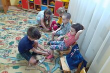 Ребята подготовительной группы помогли ребятам младшей группы правильно и аккуратно одеться после тихого часа.
