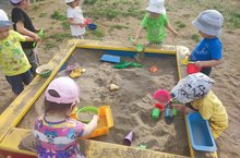 Одним из самых любимых занятий детей в детском саду на прогулке является игра в песочнице. В ней можно придумать великое множество увлекательных построек, игр, сюжетов. Ребята всех возрастных групп нашего детского сада с удовольствием играют с песком: делают сказочные постройки, дорогу, куличики. В процессе игры у них развивается не только усидчивость, а также глазомер и мелкая моторика рук. Кроме того дети учатся играть рядом с другими ребятами, что необходимо для развития.