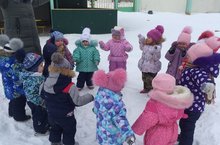 Детишки любого возраста любят зимние прогулки, когда можно в снегу поваляться, в снежки поиграть, с горки покататься. А сколько радости доставляют подвижные игры! Вот и сегодня наши малыши «Колобки» на прогулке поиграли в игры: «Снег кружится», «Паровозик», «Птички летают». Блестящие глазки, румяные щёчки и отличное настроение - результат нашей зимней прогулки!