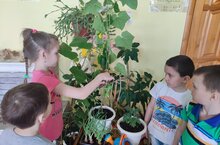 Детки с интересом наблюдали за процессом роста огурца, посаженными ими на «огороде на подоконнике». Цель наблюдения - знакомство детей с овощным растением – огурец. Формирование первичных представлений о частях растения: стебель, листья, цветок и огурец – плод. Способствование развитию тактильных ощущений через поглаживание листьев и плода. Способствование обогащения жизненного опыта и представлений об окружающем природном мире.