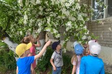 Сегодня во время прогулки мы рассмотрели нашу цветущую красавицу – яблоньку. Дети учатся замечать изменения во внешнем виде деревьев, видеть красоту ярких красок весны; знакомятся с особенностями весеннего состояния плодовых деревьев (цветение); любуются цветущими деревьями. -