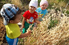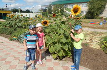 В нашем огороде растут подсолнухи, посаженные еще весной сотрудниками детсада вместе с воспитанниками. Поэтому, сегодня ни у кого не возникло сомнения в том, где отметить День Подсолнуха! Ну, конечно, в огороде!