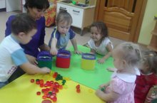 Сегодня мы с малышами играли в очень увлекательную и познавательную дидактическую игру «Собери крышки». Ребята должны были разобрать крышки по цветам: красный, зелёный, жёлтый. Малыши с удовольствием играют в подобные игры. Известно, что дидактические игры развивают память, мышление и мелкую моторику.